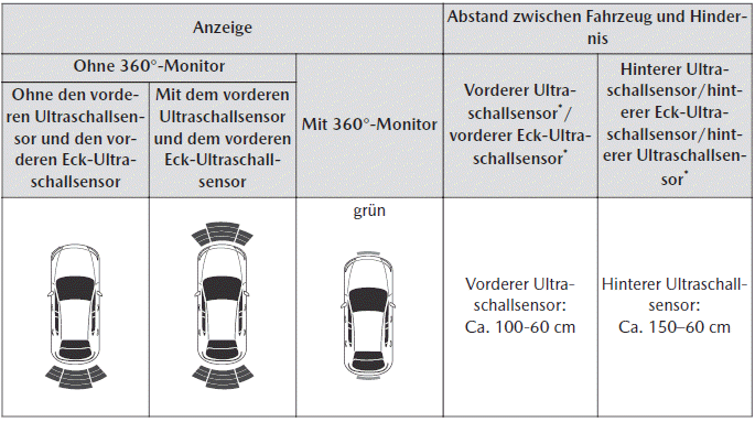 Vorderer Eck-Ultraschallsensor*, hinterer Eck-/Seiten-*Ultraschallsensor