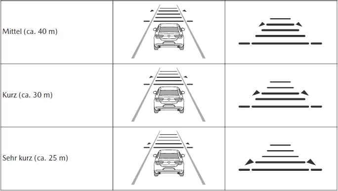 Überprüfen Sie immer die Umgebung und betätigen Sie das Brems- oder das Gaspedal, um einen sicheren Abstand zum vorausfahrenden und zum nachfolgenden Fahrzeug einzuhalten.
