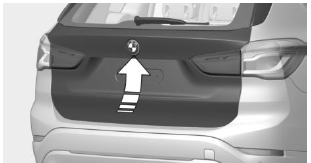 • Taste an der Innenseite der Heckklappe drücken, Pfeil 1.