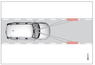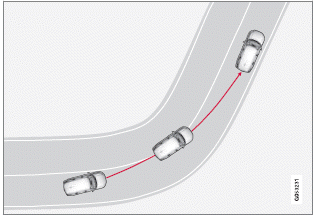 Der Spurassistent ist im Geschwindigkeitsbereich 65-200 km/h (40-125 mph) und auf Straßen mit gut sichtbaren Seitenmarkierungen aktiv.