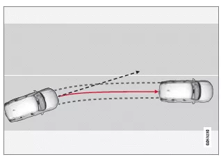 Der Spurassistent lenkt das Fahrzeug zurück in die Spur.