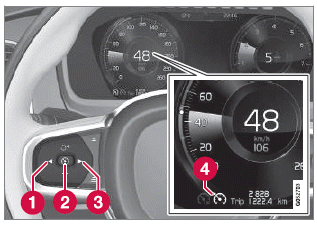 2. Bei ausgewählter Geschwindigkeitsbegrenzung: Zum Aktivieren die Lenkradtaste (1) drücken.